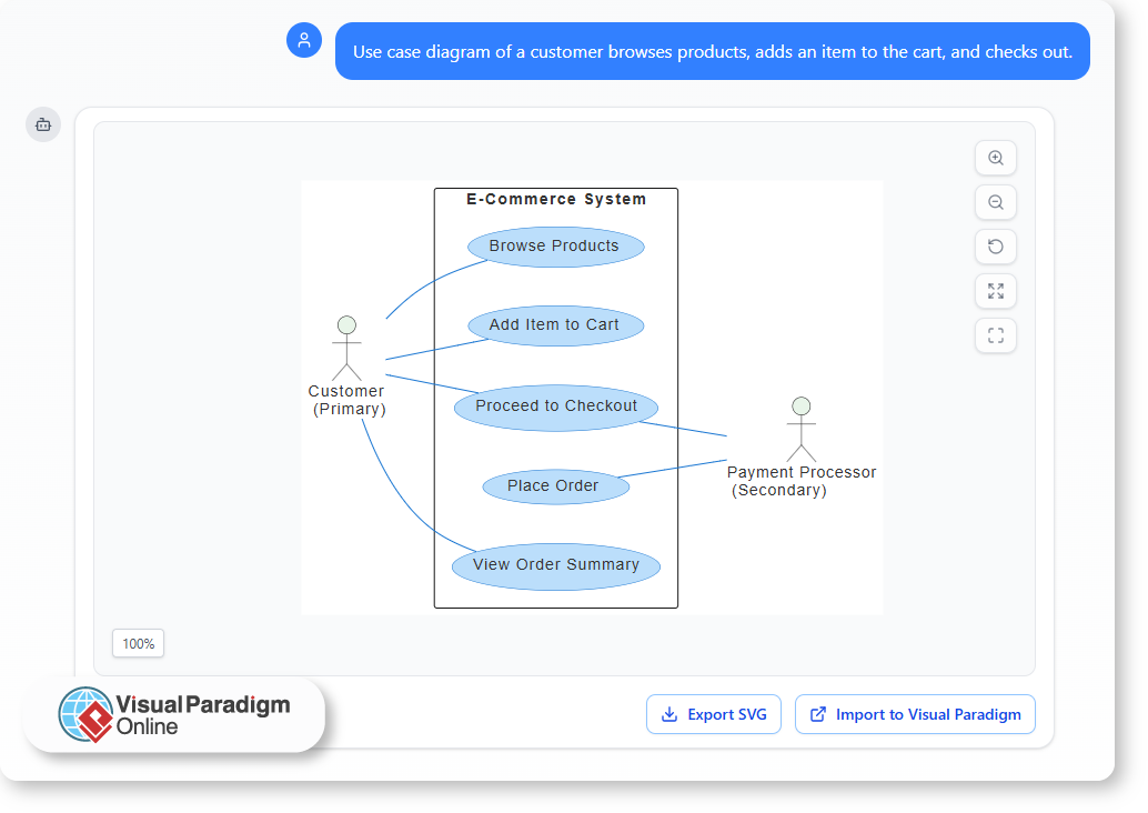 KI verändert das. Mit intelligenten Modellierungsassistenten, die nun in Tools wieVisual Paradigm Online, können Lernende ein Konzept in einfacher Sprache beschreiben und sofort ein Diagramm als Visualisierung sehen. Was einst Stunden manueller Arbeit erforderte, geschieht nun in Sekunden und schließt die Lücke zwischen Wissen und Praxis.