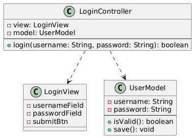 • निर्भरतालॉगिन नियंत्रक → लॉगिन दृश्य (विधि में उपयोग करता है)
