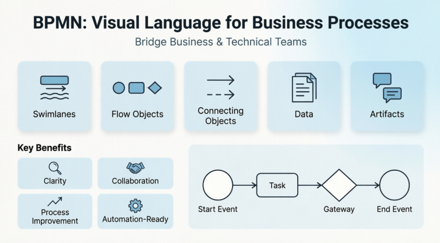 BPMN is more than just “flowcharts for business.” It is a standardized visual language designed to be intuitive enough for non-technical stakeholders (like managers or clients) while remaining precise enough for technical analysts to use as a blueprint for implementation.